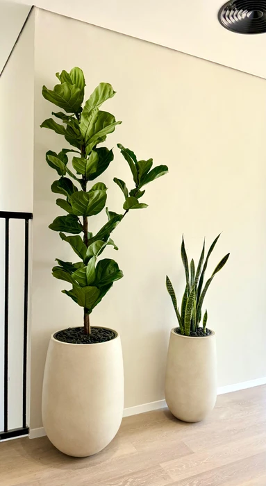 זוג כדי אליה פיקוס כינורי בכד בטון גובה כולל 2.50 סנסיווריה בכד בטון גובה כולל 1.30